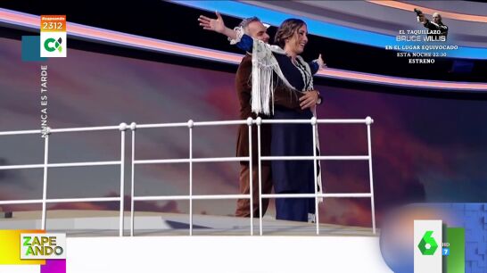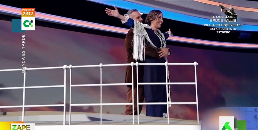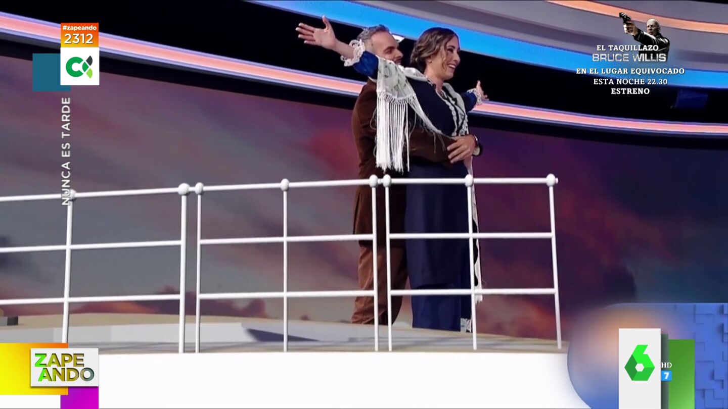 Los presentadores representan la mítica escena que protagonizan Jack y Rose en la proa del barco antes de que se produzca el naufragio y, tras ver el vídeo, uno de ellos admite que "es lo más triste" que han hecho en televisión, mientras que su compañera no puede contener la risa.