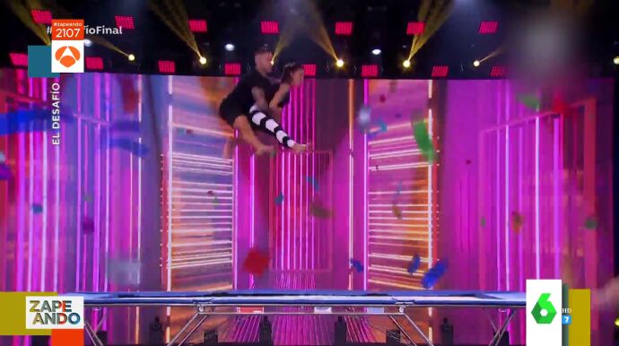 Además, Lorena Castell también se despidió "por todo lo alto" saltando en una cama elástica. "En lo que es la mejor es disimulando las pifias", destaca entre risas Valeria Ros mientras Thais Villas resalta la "actitud" de su compañera ante las continuos fallos que comete. "Atentos, a cómo disimula la caída haciendo la gallina, eso sí que no se lo esperaban", bromea Dani Mateo en el plató de Zapeando, donde Miki Nadal recuerda que en esa prueba es donde su compañera "se meaba". Puedes ver el momentazo en el vídeo principal de esta noticia.
