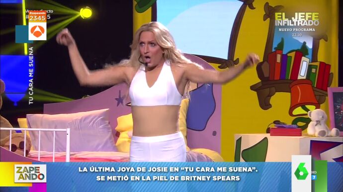 Josie sorprende en la última gala de 'Tu cara me suena' en la que encarna a Britney Spears, aunque María Gómez pone el foco en su vestuario: "¿Con qué autoridad moral volverá a opinar sobre el outfit de nadie después de haber salido en faja?".