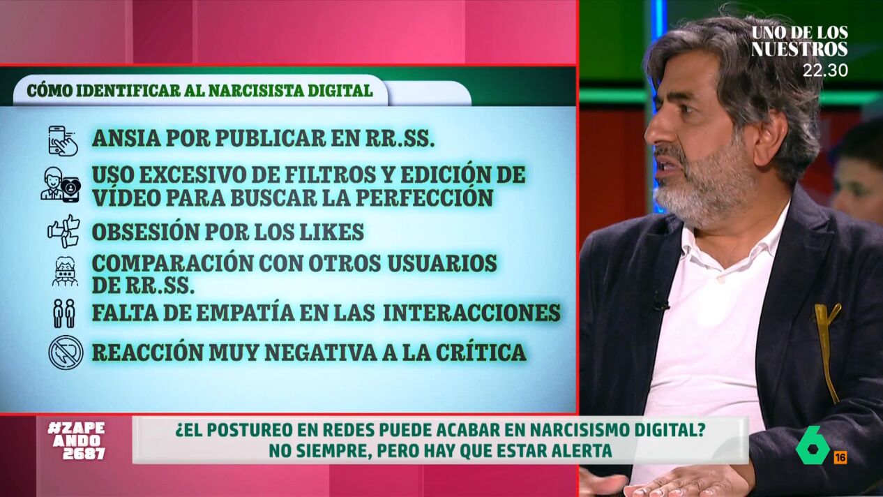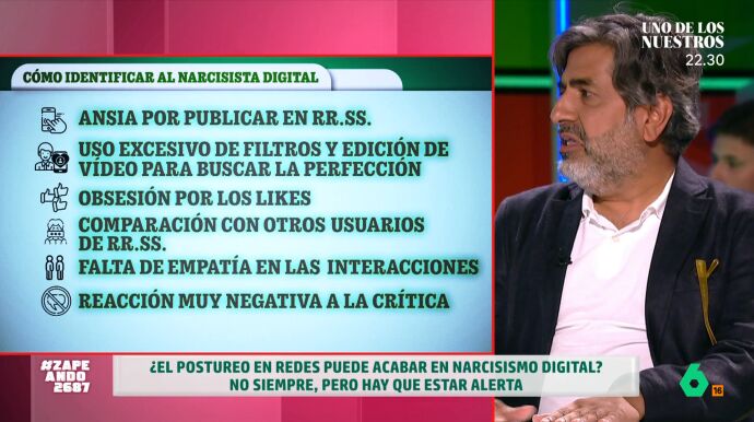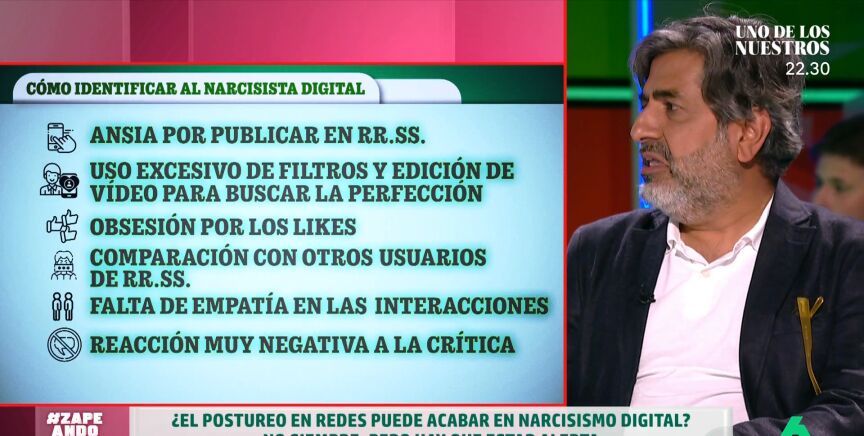"Casi todo el mundo posturea", afirma el psicólogo Arun Mansukhani, que visita Zapeando para hablar de los narcisistas digitales, un trastorno derivado de las redes sociales. En este sentido, señala que "el porcentaje de gente que es narcisista digital es mucho mayor que el de gente que es narcisista".