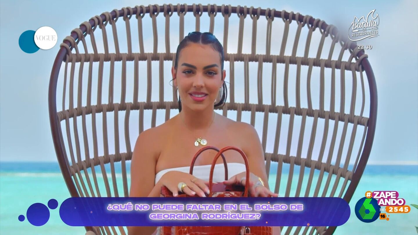 La influencer abre su bolso para la revista Vogue para mostrar que lleva en su día a día. Georgina, pareja de Cristiano Ronaldo, tiene objetos muy variados no solo útiles para ella sino también para sus hijos.