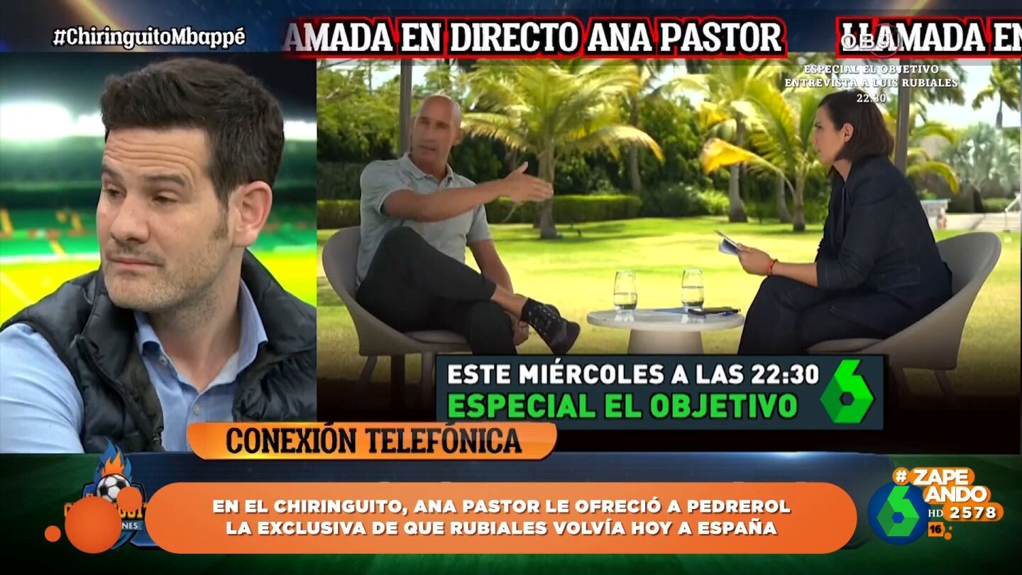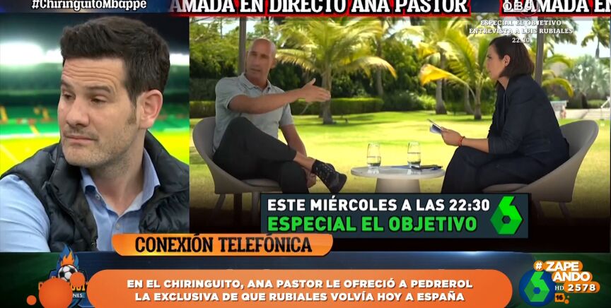 Esta noche en laSexta se va a emitir un especial de 'El Objetivo' en el que Ana Pastor entrevista a Luis Rubiales. La periodista se desplazó hasta Punta Cana para hablar con el expresidente de Real Federación Española de Fútbol. En relación a esta entrevista, Pastor participó en 'El Chiringuito' para contar una exclusiva que generó un gran revuelo.
