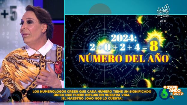 El Maestro Joao vaticina en Zapeando que este 2024 será un año que traerá cosas buenas, sobre todo para aquellos que en numerología tengan el número 8 y en el que se recibirá lo sembrado en el amor y el trabajo.