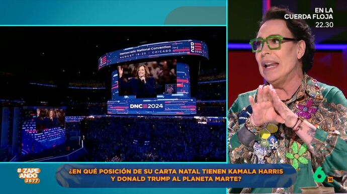 El tarotista visita el programa para desvelar quién tiene más opciones de ocupar la Casa Blanca en función de su carta astral o carta natal. ¿Será la candidata demócrata o el candidato republicano?