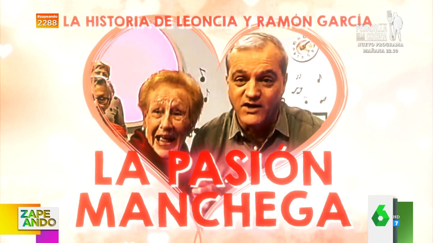 Viajamos hasta Castilla-La Mancha porque "tenemos una muy buena noticia", anuncia Dani Mateo, que explica a sus compañeros de Zapeando que "Ramón García se ha vuelto a enamorar". Y, es que, en su programa ha pasado de hacer de celestino a encontrar a su "media naranja", resalta Miki Nadal, que muestra imágenes de Leoncia, una mujer del público de su programa con la que se le vio 'atrapado'.