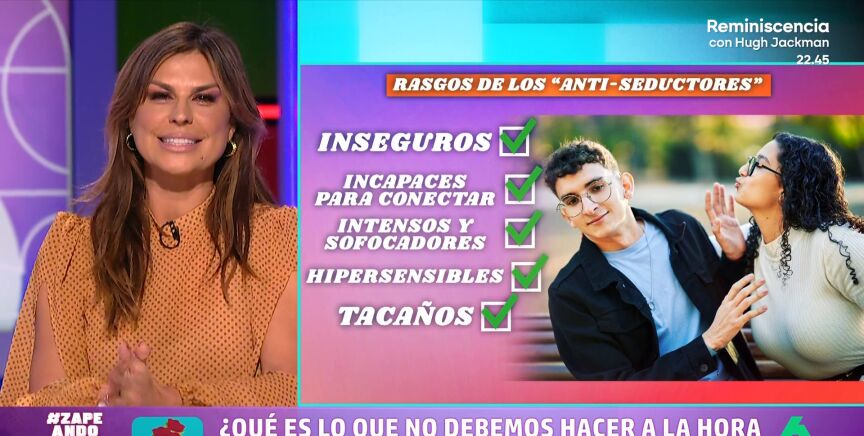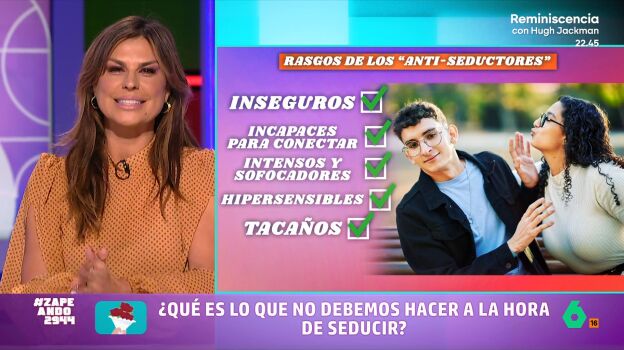 La coach emocional de Zapeando propone a Isabel Forner, María Gómez, Nacho García, Quique Peinado y Dani Mateo descubrir sus principales defectos a la hora de seducir.