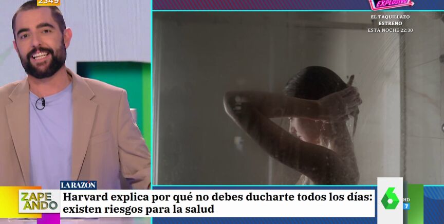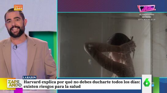 "Atentos a estos porque igual os cambia vuestra vida", comenta Dani Mateo a sus compañers, a los que informa de que, según investigadores de la Universidad de Harvard, ducharse todos los días no es bueno. Y, es que, ducharse a diario "elimina bacterias y el mal olor pero también genera irritación, infecciones y alergia".