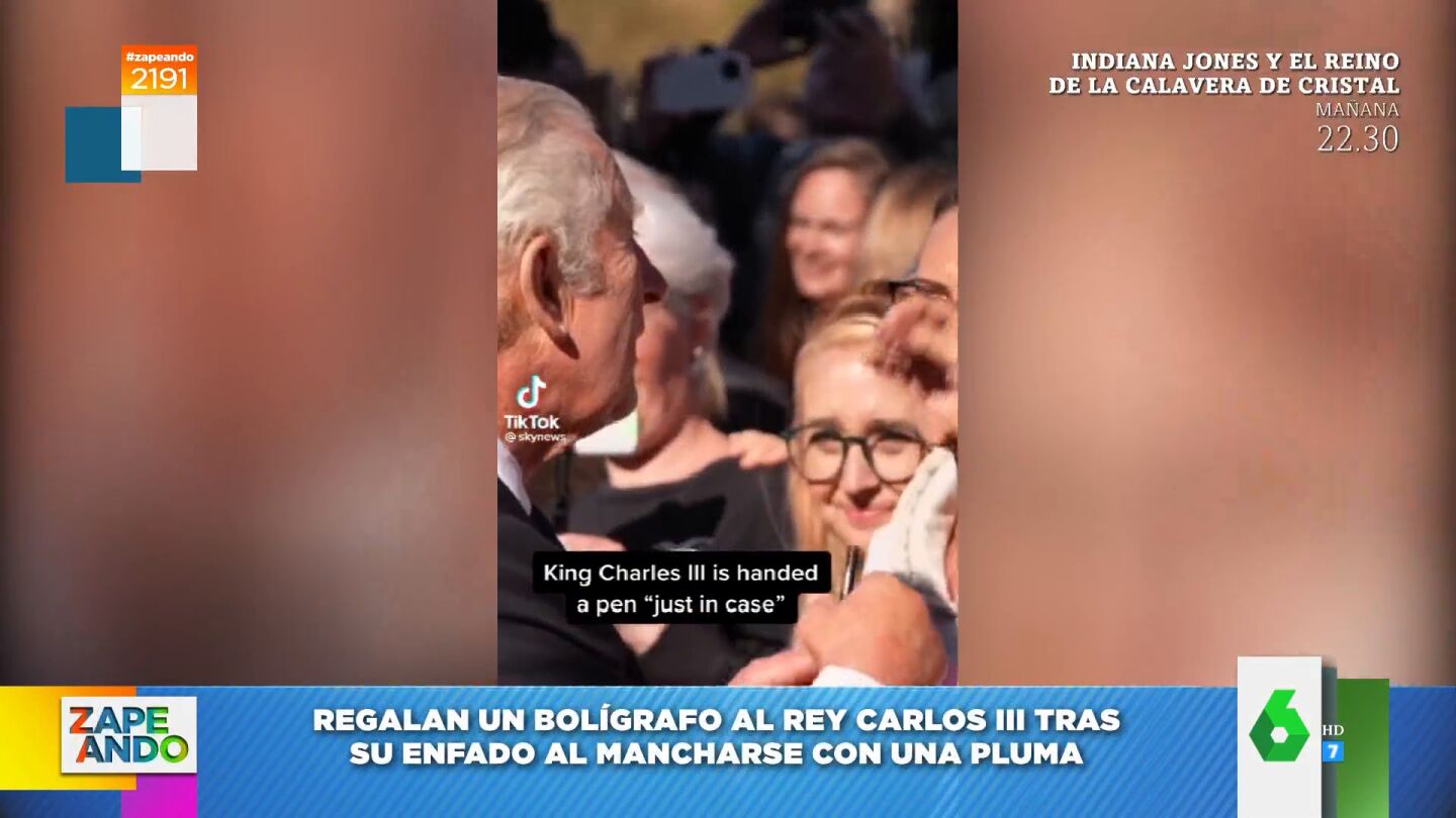 Carlos III no para de protagonizar polémicos vídeos cuando intenta firmar documentos como nuevo rey de Inglaterra. Y es que primero tuvo problemas con un tintero y, luego, con una pluma, por eso una mujer le ha regalado un boli.