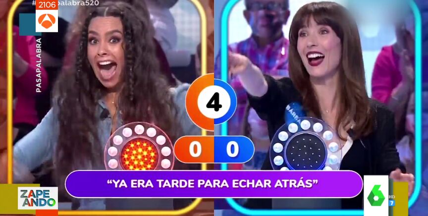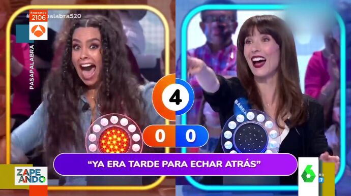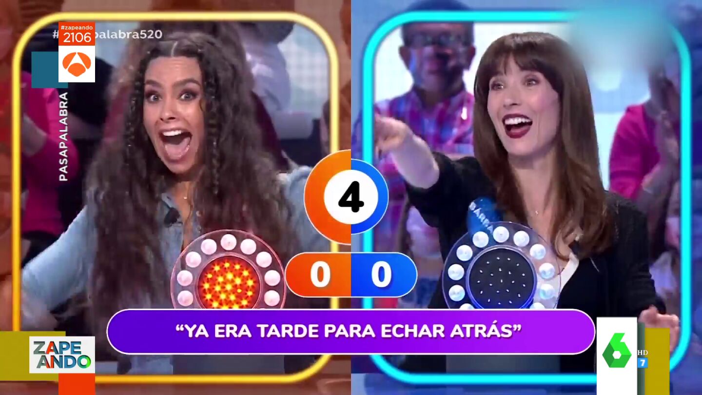 Cristina Pedroche y Miki Nadal han acudido como representantes de Zapeando al plató de Pasapalabra, donde los zapeadores se han sometido a la cómica prueba musical. Mientras Miki Nadal celebra por todo lo alto haber acertado la pregunta cuando en realidad ha fallado, a Cristina Pedroche le pasa todo lo contrario.