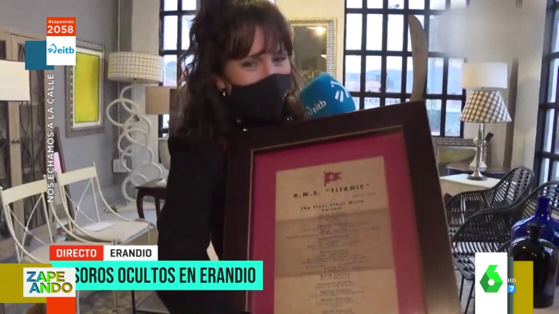 En este vídeo que trae Quique Peinado a Zapeando conocemos a Soraya Vegas, una reportera de la televisión vasca que visita a Borja, un anticuario que compra y vende reliquias del Titanic, como la que sujeta Soraya entre sus manos. "Los reporteros también pueden tener su peligro", adelanta Dani Mateo antes de dar paso al vídeo.