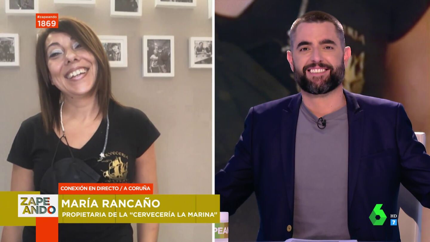 "Estoy flipando". Así se muestra María Rancaño, dueña de la cervecería 'La Marina', tras la desaparición de su foto junto a Dani Mateo, que estaba colgada en el 'Hall of Fame' del local.