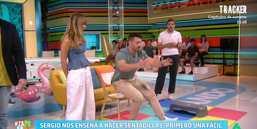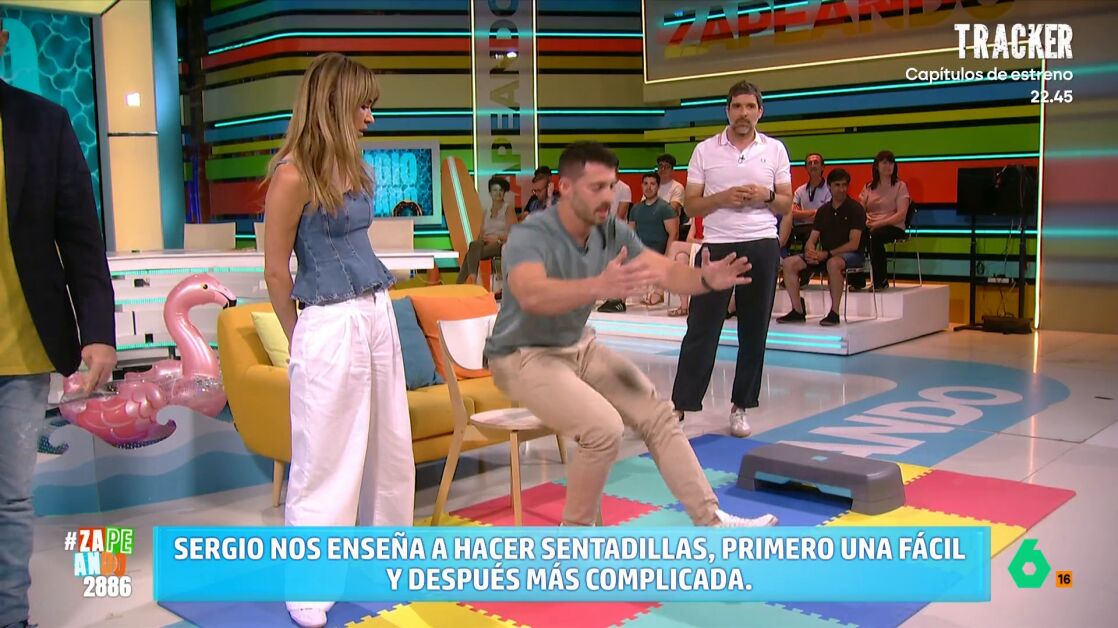 Hoy Sergio Peinado desmonta en Zapeando todo tipo de mitos sobre la grasa y el ejercicio físico y, de paso, nos pone en forma con una clase práctica formada por varios ejercicios básicos que podemos hacer en casa y que son accesibles a todo el mundo, pues nos muestra tanto el nivel 'básico' como el 'pro'.