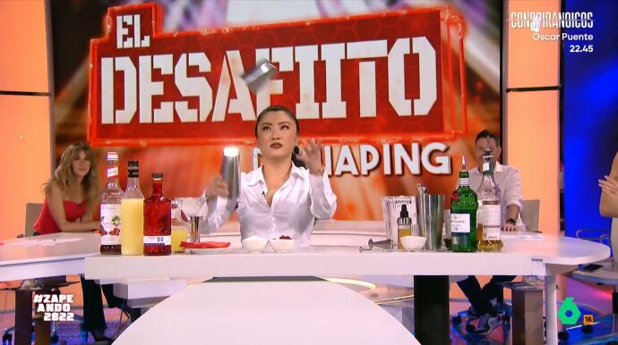 Ya en plató, se enfrenta a su 'Desafiíto' de coctelería, combinando todo lo que ha aprendido y algunas lecciones de chino. Dani Mateo es el elegido para probar su cóctel: "Qué simpática eres y qué gracioso lo haces todo". Finalmente, por tres votos a uno, Jiaping no supera el 'Desafiíto' de esta semana.