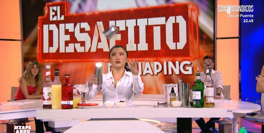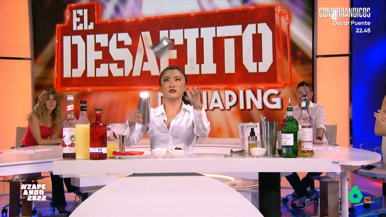 En 'El Desafiíto' de esta semana, Jiaping aprende a preparar cócteles sin alcohol junto a Julio de la Torre, de la Escuela de Coctelería de Madrid, y demuestra en directo sus conocimientos adquiridos.