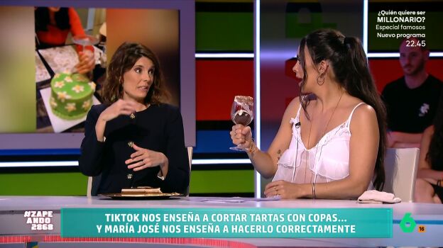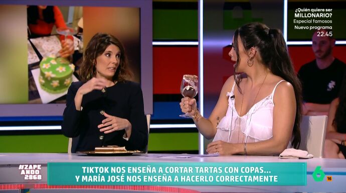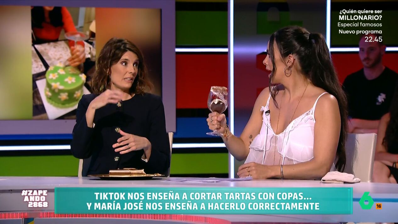 Una nueva moda se ha hecho viral en redes: cortar tartas con una copa de vino y comer directamente desde ella. En Zapeando, la experta en protocolo María José Gómez Verdú ha dado su opinión al respecto.