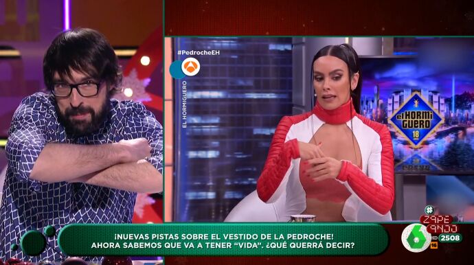 Tras las palabras de Pedroche, los zapeadores se han aventurado a intentar adivinar cómo será su outfit para las campanadas de 2023. "El traje tiene vida, se va a seguir moviendo después...¿estás vacilando a España o vas a ponerte un señor encima, como un koala, que luego va a irse a su casa?", pregunta Quique Peinado.