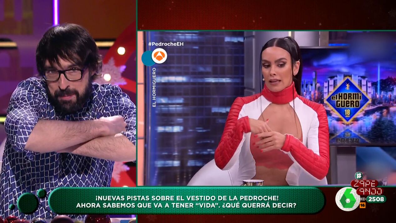 Cristina Pedroche ha visitado 'El Hormiguero' a pocos días de celebrar su décimo aniversario despidiendo el año desde la Puerta del Sol. La zapeadora no ha querido dar muchas pistas sobre cómo será su vestido pero sí que ha dado una definición del mismo: "Vida". "El vestido, cuando yo me lo quite, podrá seguir moviéndose", añade Cristina.