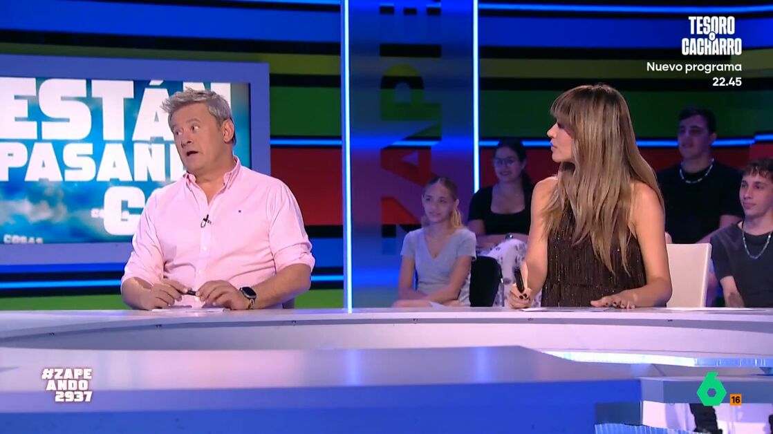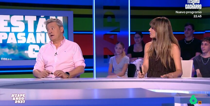 "Tanto decir 'Los amantes de Teruel, tonta ella y tonto él'... tontos el resto de españoles que estamos a dos velas", comenta María Gómez. "Tontos nosotros", añade Dani Mateo. El presentador de Zapeando expone, irónico, que él, en muchas ocasiones, ha estado "a dos personas de montarme un trío".