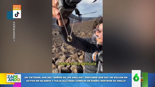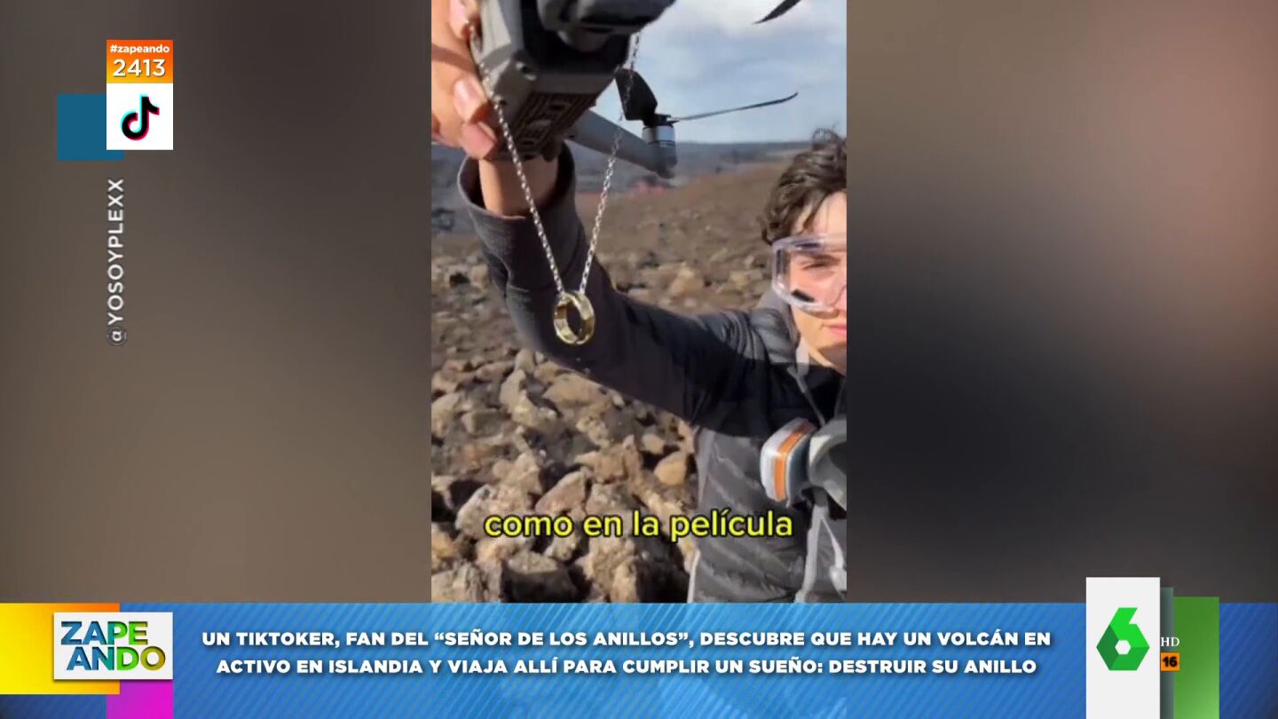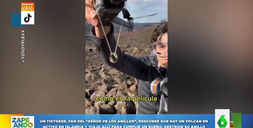 El tiktoker y youtuber YoSoyPlex ha cumplido uno de sus sueños: quemar su anillo. Según avanza Quique Peinado a sus compañeros de Zapeando, "entre sus aficiones está ser un gran fan del 'Señor de los anillos'". Por eso, al enterarse de que hay un volcán en activo en Islandia, ha decidido coger el primer vuelo hacia allí y quemar su anillo como hace Frodo al final de la película.