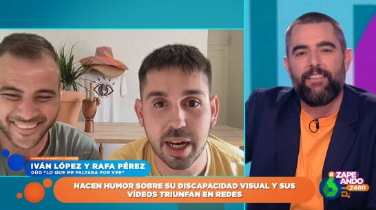 Iván López y Rafael Pérez, el dúo cómico 'Lo que me faltaba por ver'. Esta pareja de humoristas cuentan con una particularidad: Iván es invidente. Ambos participan en Zapeando para hablar sobre como han logrado hacerse virales en redes sociales haciendo humor con la ceguera.