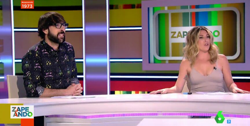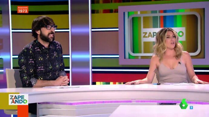 Nada más arrancar Zapeando, Dani Mateo presenta a los zapeadores que se encuentra en la mesa. Por un lado están Miki Nadal, haciendo su inconfundible sonido de sirena, y Lorena Castell. Por el otro están Valeria Ros y Quique Peinado, que se saludan de una manera que llama la atención de Lorena Castell.
