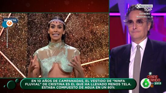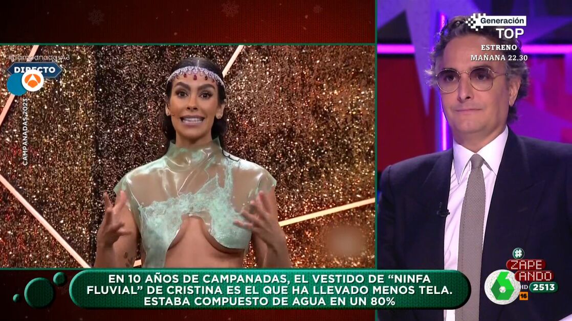 El estilista visita Zapeando para contar algunas curiosidades sobre el vestido con el que despidió el año Cristina Pedroche desde la Puerta del Sol. El vestido fue diseñado por la navarra Paula Ulargui en colaboración con la ONG Greenpeace.