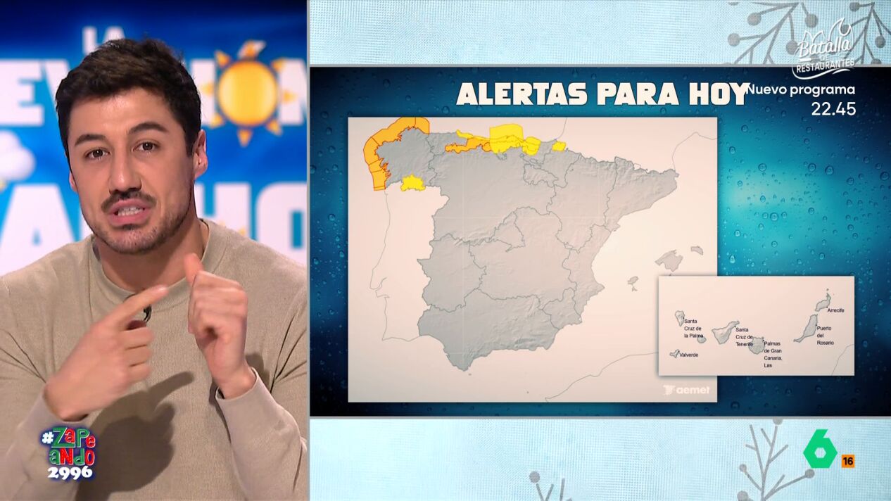 El meteorólogo visitó Zapeando para explicar las alertas activas por el fuerte temporal del 9 de diciembre y adelantar cómo evolucionará el tiempo en los próximos días. Todos los detalles en este vídeo de Zapeando.