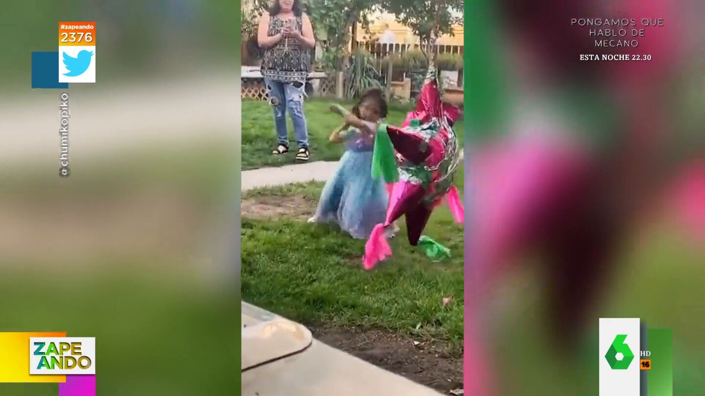El viral de una niña que se ensaña con su piñata de cumpleaños: así le da con el bate con todas sus fuerzas