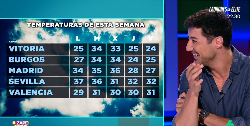 En cuanto a esta la semana, Cacho tiene mejores noticias ya que van a mejorar durante unos días. Explica que "a partir de estos días en el norte va a salir el sol y van a subir las temperaturas". "Las temperaturas van a subir 14 grados en dos días", añade. Las tormentas serán muy pocas y se van a quedar en Cataluña.