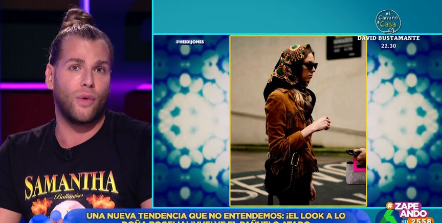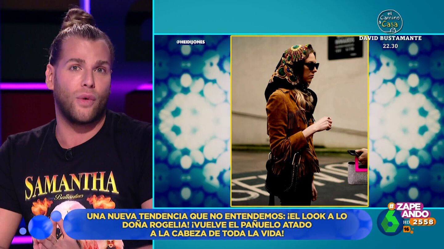 Quique Peinado expone que llega una esas tendencias que "nadie ha visto venir, pero de repente están aquí" y que califica como 'look doña Rogelia'. Se trata del clásico pañuelo en la cabeza anudado al cuello, que solía llevar la reina Isabel II o actrices como Grace Kelly o Audrey Hepburn.