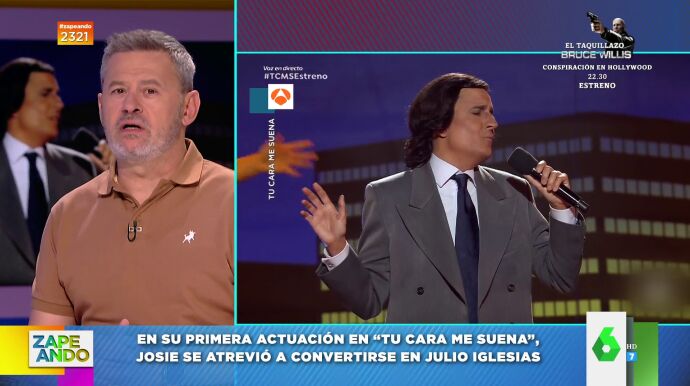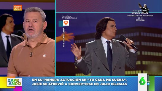 Josie debutó por todo lo alto en 'Tu cara me suena' imitando a Julio Iglesias, un actuación que analizan Miki Nadal y Dani Mateo, para los que no ha pasado desapercibido el vestuario, peinado y bronceado del experto en moda de Zapeando.