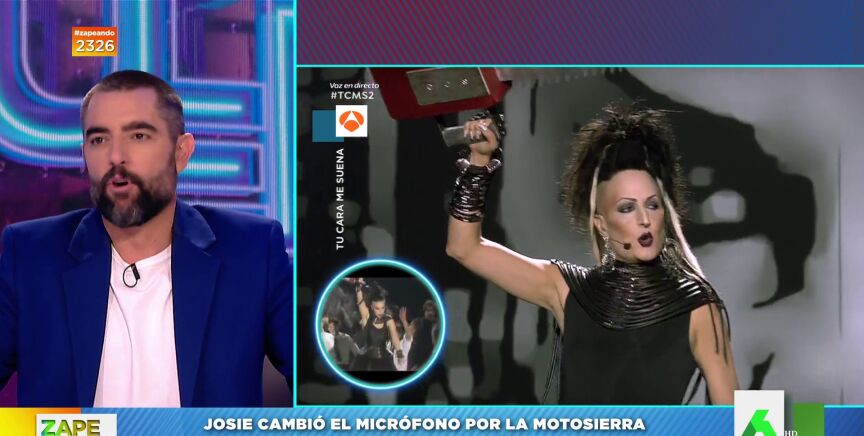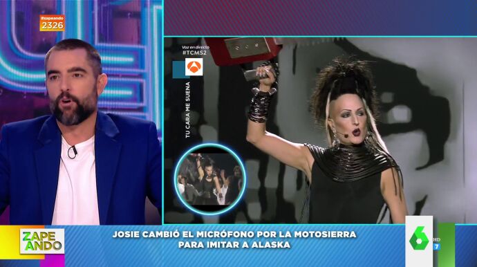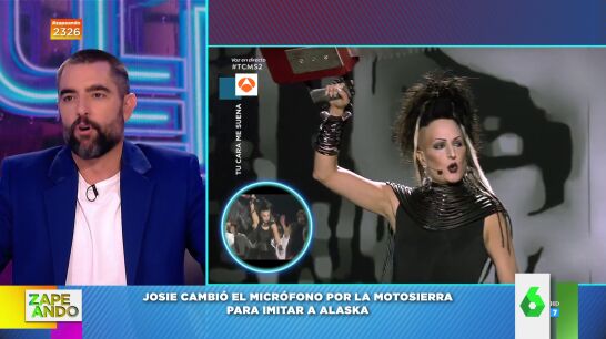 El experto en moda cambia el micro por una motosierra para imitar a Alaska en el último programa de 'Tu cara me suena' y Dani Mateo asegura que "tiene estilo hasta cayendo, es espectacular". Puedes verlo en este vídeo de Zapeando.