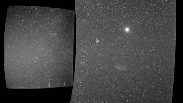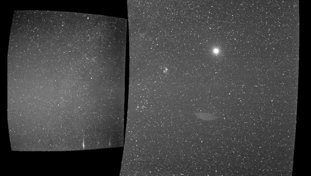 Gracias a la instantánea que ha capturado la única cámara con la que está equipada esta nave, podemos ver el planeta que habitamos como un punto brillante rodeado de un manto de estrellas. Los dos paneles de la imagen que realizó el instrumento, llamado WISPR (imagen de cuerpo amplio), provienen de los dos telescopios con los que está equipado este y que apuntan en direcciones diferentes.
