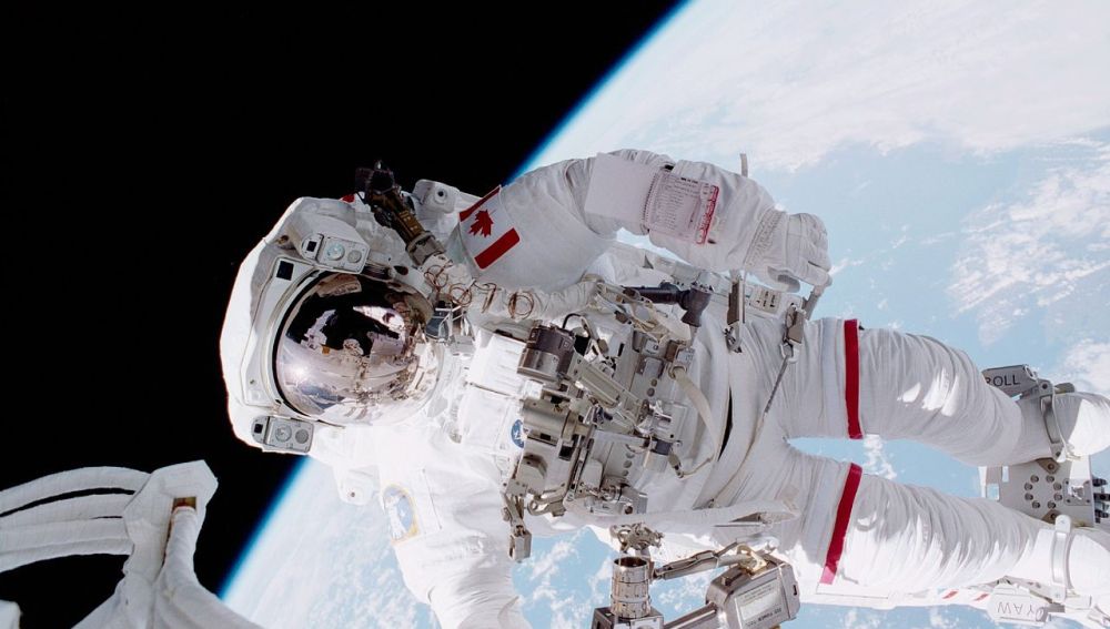 Cambiemos las condiciones de contorno del experimento. Llévate a esa persona de viaje a Baikonur (Kazajistán) y pregunta a algún lugareño por el cosmódromo. Cuando llegues, súbete a una Soyuz y viaja hasta la Estación Espacial Internacional. Una vez allí, pídele al comandante que te deje dos trajes de astronauta. Uno para ti y otro para tu compañero, porque queréis realizar una actividad extravehicular (EVA), es decir, un paseo espacial.