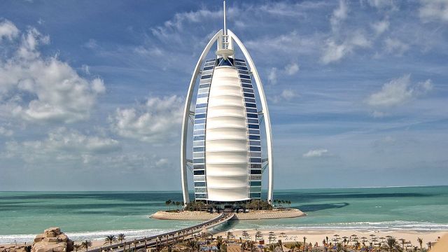 La urbe cuenta con el que era en 2010 el rascacielos más alto del mundo, Burj Khalifa (828 metros de altura), además de una arquitectura vertical y horizontal -hoteles, centros de negocios, tecnológicos e islas artificiales-, que desafía el clima, la orografía y las dificultades de habitabilidad del desierto.