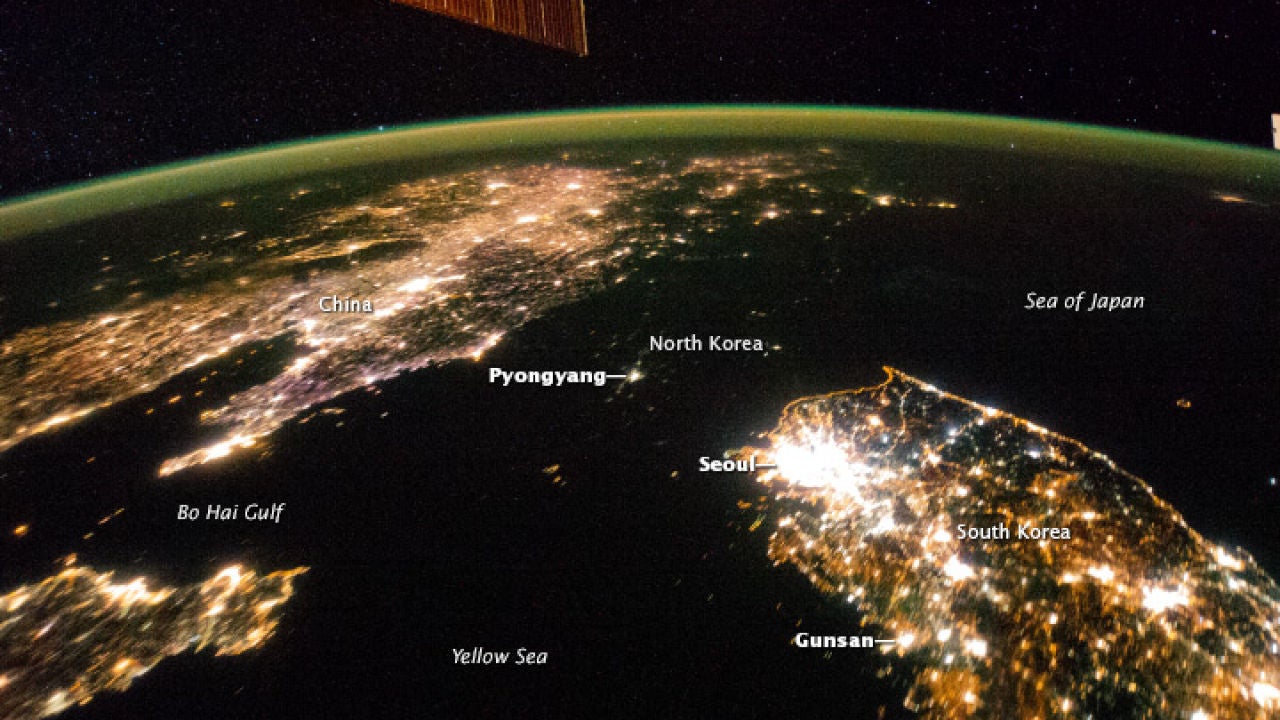 Mientras sobrevolaba el Este de Asia, la Estación Espacial Internacional recogió estas imágenes de cómo es una noche en la península de Corea. El resultado es estremecedor.