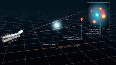 Un equipo de investigadores ha conseguido detectar un raro evento cósmico de una forma que nunca hasta ahora había sido observado: las astrofísicos consiguieron captar imágenes de una supernova amplificada más de 50 veces gracias lo que se conoce como lente gravitacional.