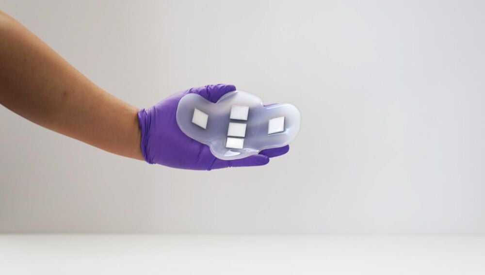 Los sensores están colocados en forma de cruz, lo que permite al parche obtener imágenes de toda la vejiga, que mide unos 12 por 8 centímetros cuando está llena.