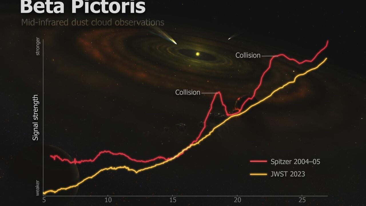 En realidad, los restos de la colisión de asteroides fueron captados en 2004 por el Spitzer, pero ahora el James Webb ha confirmado de qué pudo tratarse.