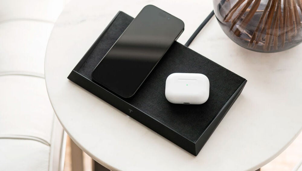 Puede cargar hasta tres dispositivos simultánteamente. Eso sí, su diseño exclusivo y sus materiales de calidad hacen de este cargador una auténtica pieza de colección al alcance de unos pocos.