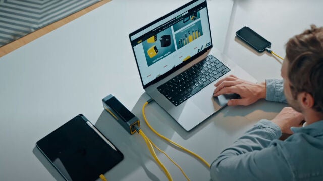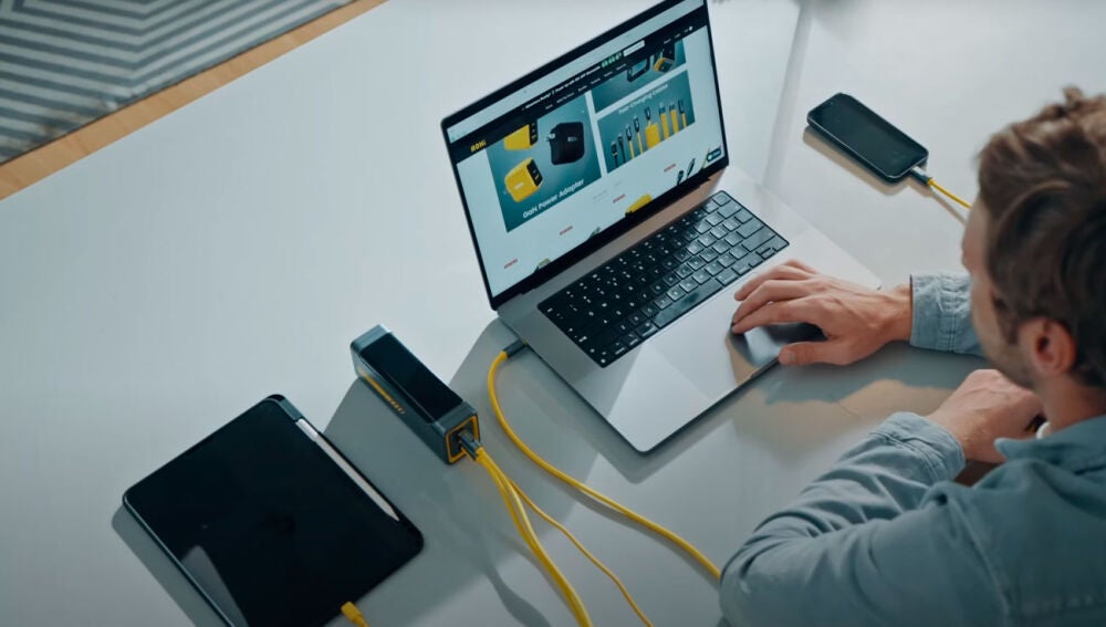 Para hacerse una idea, esta batería puede cargar un MacBook Pro de 16 pulgadas al 60% en tan solo 30 minutos con una potencia de carga de 140 W. O un iPhone 16 al 79% en solo 20 minutos, con una potencia de carga de 45W. En 30 minutos podemos cargar hasta el 31% de una Microsoft Surface Pro 10 gracias a la carga de 39 W. Por tanto, es capaz de cargar los dispositivos en un tiempo récord.