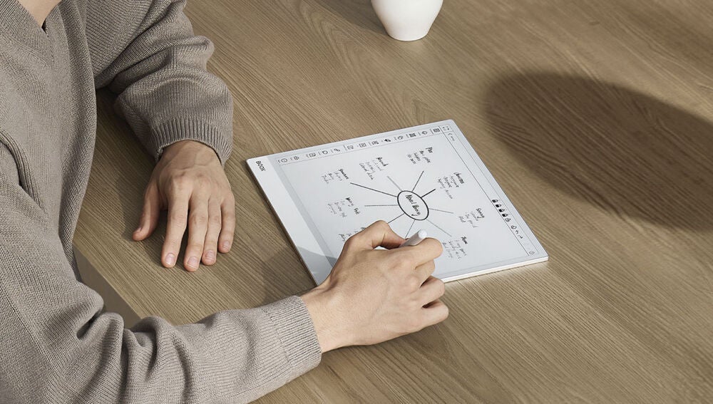 Este modelo llega al mercado para competir con otras tabletas de tinta electrónica de gran formato, como el Kindle Scribe, o el característico RemarKable, que se han convertido en los modelos de referencia de este nuevo segmento del gran cuaderno digital con lápiz inteligente integrado. En este caso su gran atractivo es una pantalla de gran tamaño, de nada menos que 13,3 pulgadas, que nos ofrece ahora una resolución mucho más elevada, que tiene como consecuencia directa unos textos más definidos en blanco y negro.