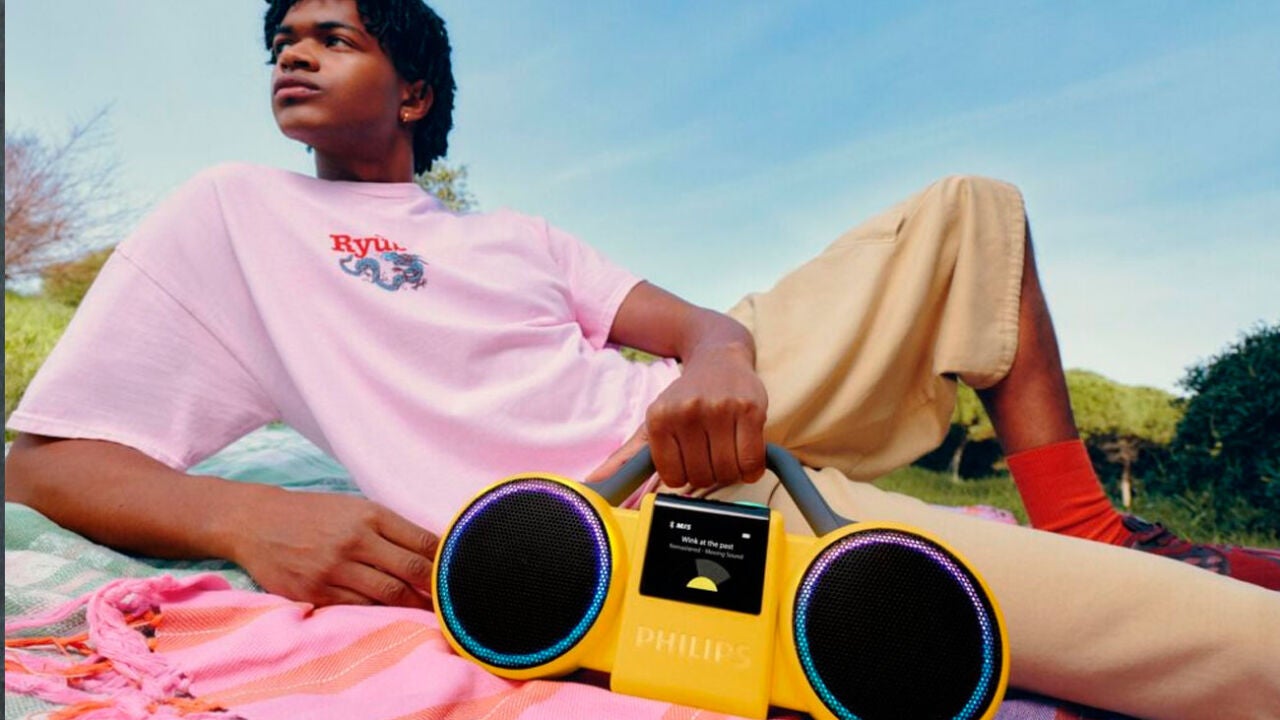 Philips ha tirado de su catálogo para recuperar algunos diseños que recuerdan mucho a algunos de sus productos de hace cuatro décadas. The Tube es el dispositivo más potente de cuantos ha lanzado, y tiene un diseño clásico de radiocasete, con un llamativo color amarillo, que en los 80 asociábamos con los dispositivos más resistentes a los elementos. Este tiene una potencia de 140W, gracias a dos woofers de 12,7 cm y dos tweeters de 19mm. Viene con Bluetooth 6.0 de última generación, y compatibilidad con Auracast para compartir audio. Es resistente al agua y al polvo con certificación IP67. Aquí no hay pilas gigantes, y sí una batería que ofrece hasta 24 horas de reproducción. Su precio es de 350 euros.