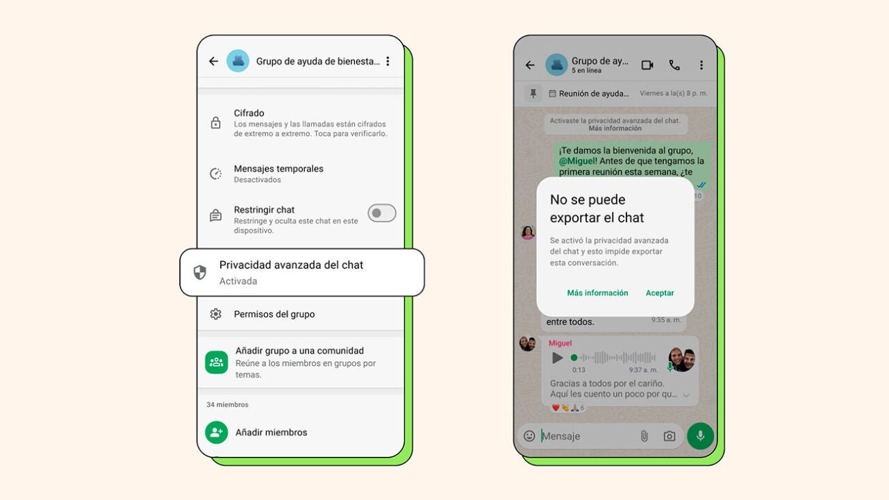 La aplicación lo ha anunciado en una nueva entrada de su blog, donde ha desvelado que más allá de que nuestros mensajes ya estén bien protegidos por el cifrado de extremo a extremo, ahora tendremos un poco más de privacidad en nuestros chats. Esta nueva capa se denomina Privacidad avanzada del chat, y se puede disfrutar de él tanto los chats individuales como los que tenemos dentro de grupos. Y ha sido desarrollado para que nuestros chats siempre estén en un lugar seguro.