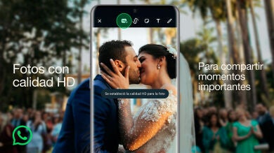 Para poder elegir el envío en calidad HD hace falta pulsar un nuevo icono que vemos en la parte superior de la pantalla cuando estamos a punto de enviar la imagen, en el mismo momento en el que esta se encuentra previsualizada. Ese icono, al pulsarlo, da paso a un selector de calidad, pudiendo mantener la calidad estándar, o la HD. Esta en algunos casos puede llegar a ser hasta 4K, al menos tal y como hemos podido comprobar en el envío de algunas imágenes con este método en los últimos meses.
