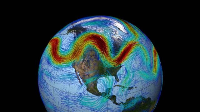 Las corrientes de chorro o jetstream son bandas concentradas de vientos en la parte superior de la atmósfera que fluye alrededor de la Tierra en ambos hemisferios. Su localización no es fija, sino que varía en función de los cambios en la posición y la intensidad de sistemas de altas y bajas presiones. Éstas corrientes pueden cambiar su curso, desplazarse hacia el norte o hacia el sur así como aumentar su sinuosidad, asemejándose en algunas ocasiones a una corriente que fluye rápidamente y a un río lento y serpenteante en otras.
