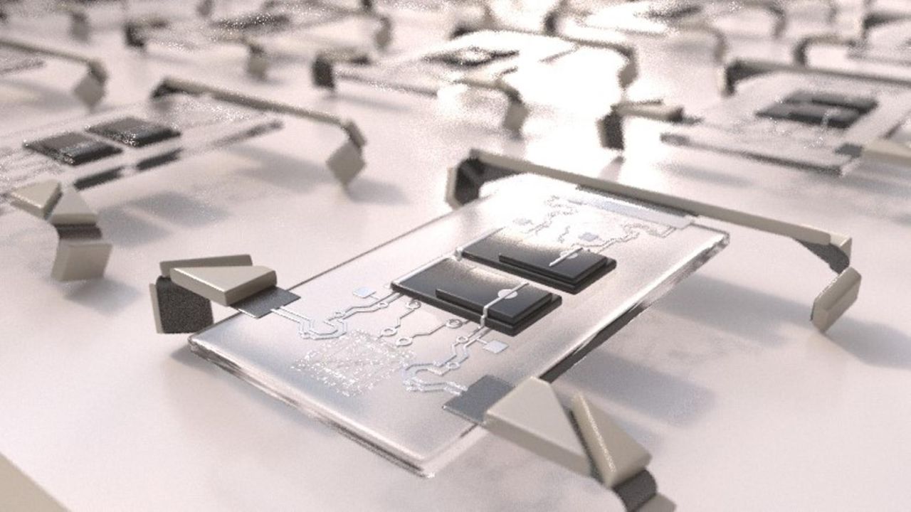 En una oblea de silicio de 4 pulgadas se pueden producir más de un millón de robots caminantes que se alimentan de la energía fotovoltaica de la electrónica de a bordo.