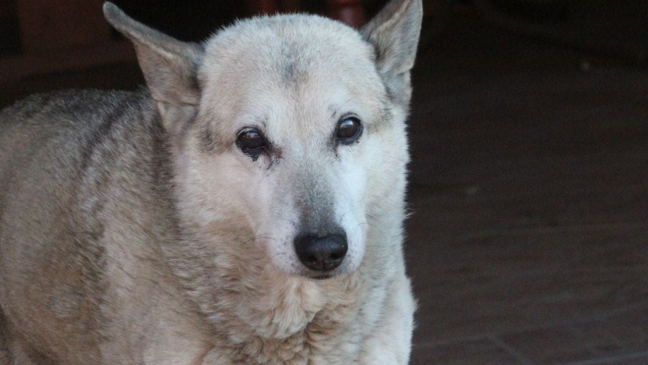 Perra mestiza llamada Kedves y de 22 años. / L. Gerencsér