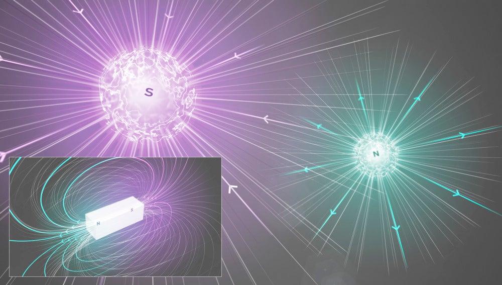 Al igual que la electricidad tiene dos cargas, positiva y negativa, el magnetismo tiene dos polos, norte y sur. La diferencia estriba en que mientras que es fácil aislar una carga eléctrica positiva o negativa, nunca se ha visto una carga magnética aislada, un monopolo. Si se corta una barra magnética por la mitad se obtienen dos barras magnéticas más pequeñas, pero cada una con su polo norte y sur. Sin embargo, la teoría sugiere que el magnetismo podría ser una propiedad de las partículas elementales. Así, como los electrones tienen carga negativa y los protones positiva, los monopolos magnéticos podrían en teoría tener un polo norte o sur.