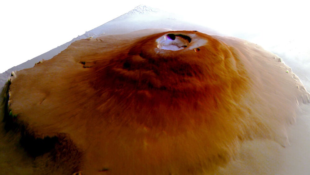 Las misiones ExoMars y Mars Express de la Agencia Espacial Europea han descubierto por primera vez agua helada en las cumbres de los gigantescos volcanes próximos al ecuador del planeta rojo, una zona donde se creía imposible que existiera escarcha.